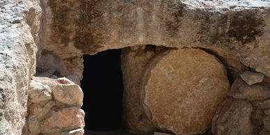At early dawn on the first day of the week after Jesus' death by crucifixion, women went to His tomb to anoint His body with spices. The stone was rolled away.